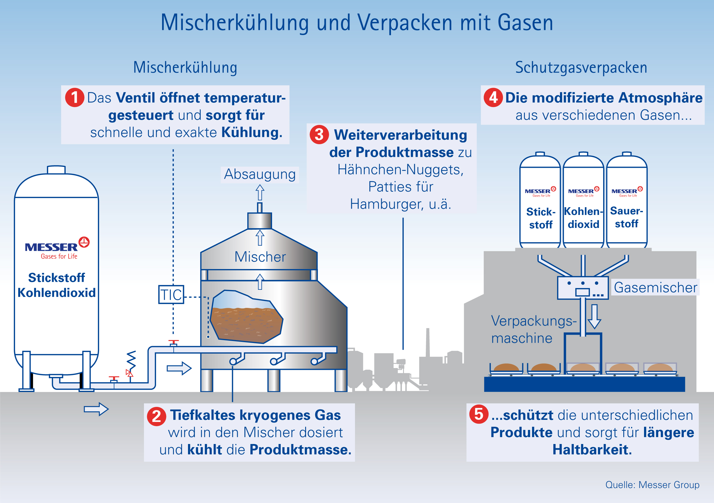 Messer hat dazu das Variomix-Verfahren zum Kühlen mit flüssigem Stickstoff oder flüssigem Kohlendioxid entwickelt.