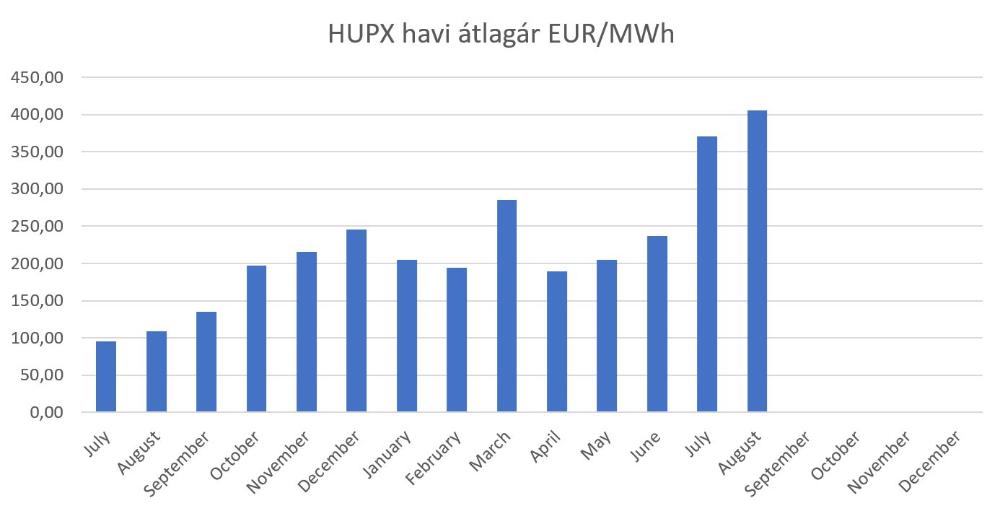 Figyelembe véve az augusztusi átlagos energiaárat (405,21 €/MWh), az alábbi ideiglenes felárat/pótdíjat állapítjuk meg szeptember hónapra: